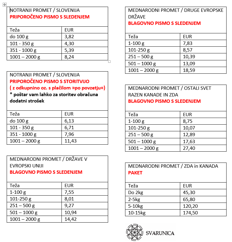 V strošek pošiljanja sta vključeni poštnina in ovojnina.