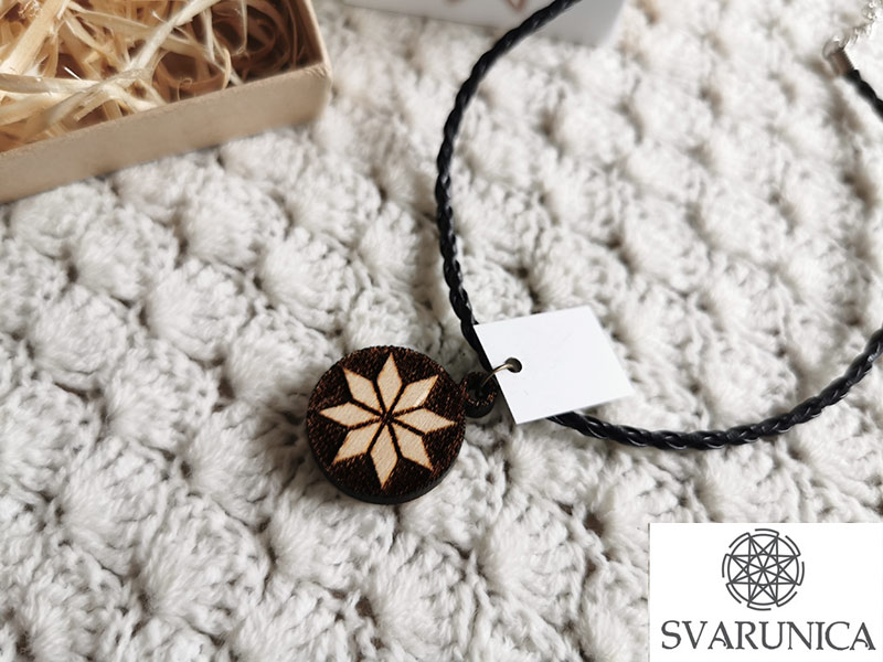 Leseni obesek s simbolom osemkrake zvezde jutranjice je zaščitni amulet, ki prinaša svetlobo, ki premaga temo, daje nam moč in prinaša nove začetke ter dolgo življenje.