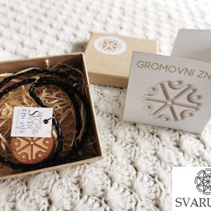 Leseni obesek Gromovni znak, na črni, prepleteni vrvici (imitacija usnja)