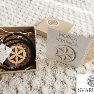 Leseni obesek Perunica (Morca), na črni, prepleteni vrvici (imitacija usnja)