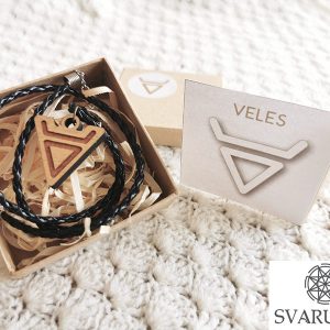 Leseni obesek Jutranjica / Alatyr na črni, prepleteni vrvici (imitacija usnja)